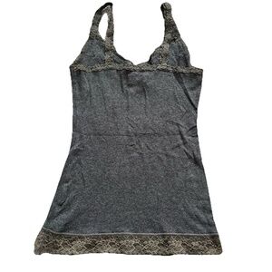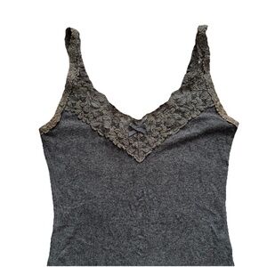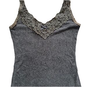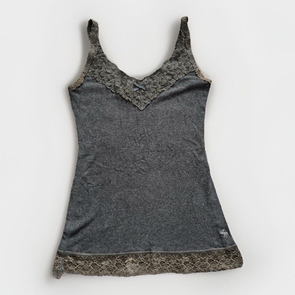 Abercrombie & Fitch Y2K Ribbed Lace Trim Bow Cami Tank Top Small Coquette Gray