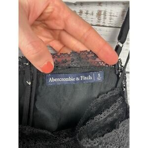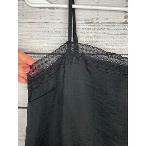 Abercrombie & Fitch Y2K Satin Black Cami Tank Top Lace Trim Boxy Witchy Small