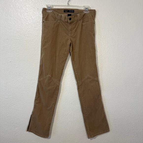 Abercrombie & Fitch Y2K Tan Slit Hem Flap Pockets Bootcut Corduroy Pants Sz 2