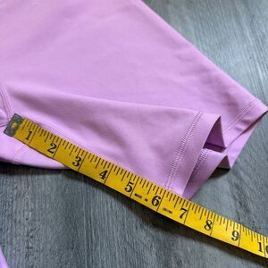 These super smooth 7” YPB Your Personal Best bike shorts from Abercrombie & Fitch are in a gorgeous pinky/purple color. Size small with nice stretch. Buttery soft. Large pocket inside the front of the waistband. Please see photo section for approximate flat measurements + my model stats for fit reference. Material: 78% polyester, 22% elastane. Note: please see close up photo of subtle discoloration between thighs where they rubbed against the bike seat. Only noticed while taking close up photos. It may come out if stain treated.