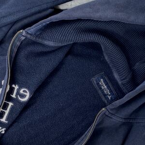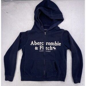 Abercrombie & Fitch Zip Hoodie L Soft Fleece Navy NY Moose Logo Blue Zip UP