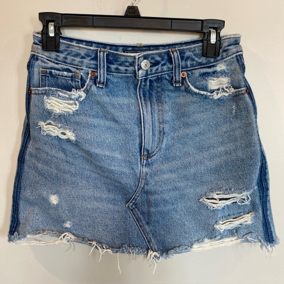 Abercrombie & Fitch Zoe Natural Rise A-Line Jean Skirt Distressed Denim 26 2