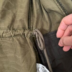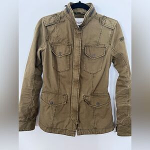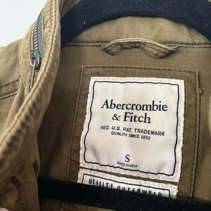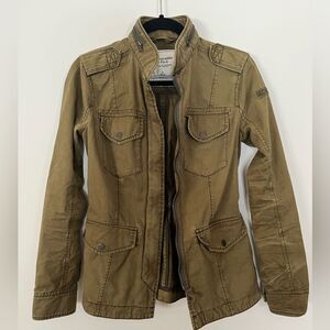 Abercrombie & Fitch, army green utility jacket, lapels, drawstring, pockets, S