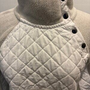 Abercrombie & Fitch asymmetrical snap up sherpa top with quilting in lt grey