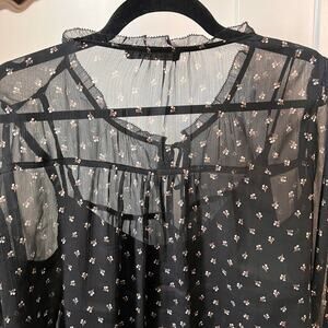 Abercrombie & Fitch black mesh blouse floral print Size XL