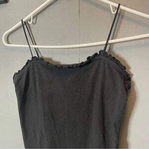 Abercrombie & Fitch black ruffle hem bodysuit women size medium