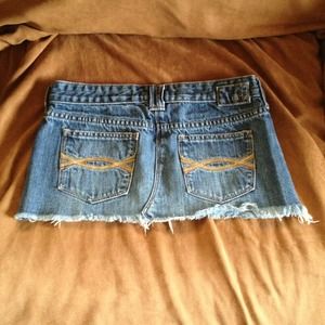 Blue jean mini skirt from A&F. Super cute just not my style. It has belt loops and a button and zipper. Cut design on back pockets. On the back, the bottom part kinda flips up in one spot, but it can probably be fixed with an iron! Other than that, perfect condition! Worn maybe once or twice.