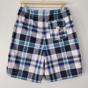Abercrombie & Fitch blue plaid swim trunks mens size M