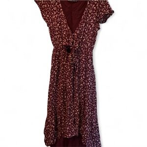 Abercrombie & Fitch burgandy Floral high low Dress size small