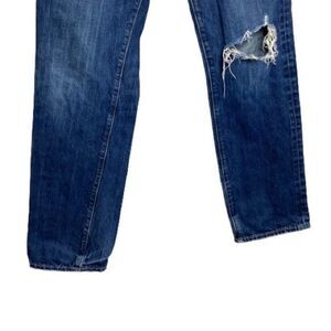 Abercrombie & Fitch button fly distressed slim straight jeans size 30 X 30. Dark wash. 100% cotton. Waist 15” Rise 9” Inseam 30”. Very good condition.