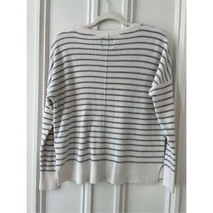 Abercrombie & Fitch cream and gray striped v-neck ribbed sweater M