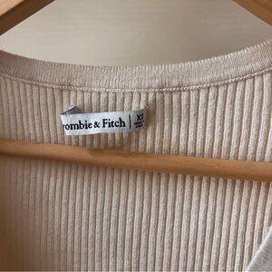 Abercrombie & Fitch cropped short sleeve button down ruffle hem sweater, in Nude/Taupe color. Size XS. The style is buttoned down all the way until the last button. It’s meant to be open on the last one.