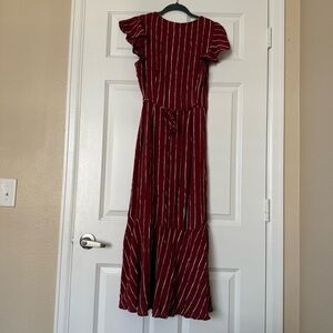 Abercrombie & Fitch dress Wrap small maroon red stipe asymmetrical Medium. Excellent condition. Hi-Low Dress.