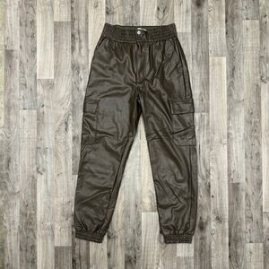 Abercrombie & Fitch faux leather cargo pull on olive green pants