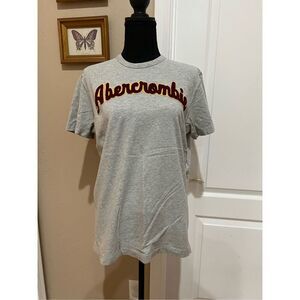 Abercrombie & Fitch gray embroidered short sleeve t-shirt. Measurements and condition as shown in photos
