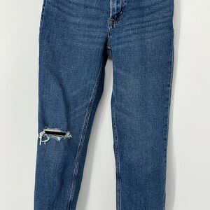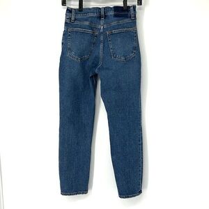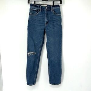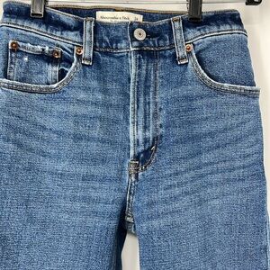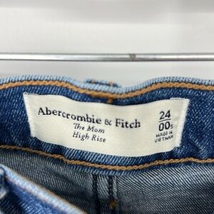 Abercrombie & Fitch high rise mom jeans size 24 washed never worn waistband lying flat measures 12.5 inches. Rise measures 10 inches. Inseam measures 24 inches