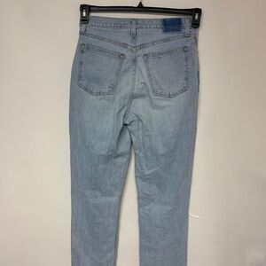 -style straight leg ultra high rise 5 pockets light wash