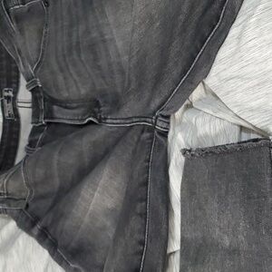 Grey black distressed raw cut raw-cut frayed-hem frayed hem