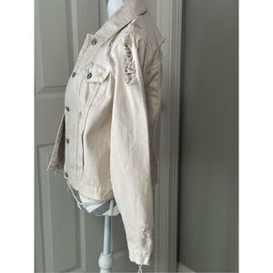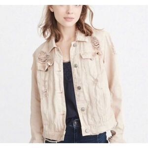 Abercrombie & Fitch light pink ladies destroyed denim jacket