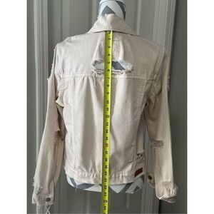 Trendy destroyed Abercrombie & Fitch light pink ladies denim/jean jacket in size M. Just the right amount of coverage over a sundress, light tank, etc. 100% cotton. EUC. Worn once. Roll up sleeves or wear long.