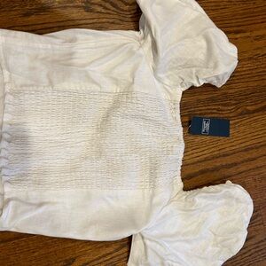 Abercrombie Fitch linen blend medium White Puff Sleeve Top