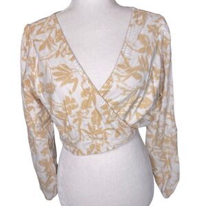 Abercrombie & Fitch long sleeve linen blend wrap crop top size Large