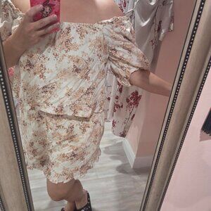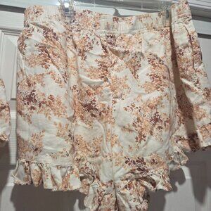 One only a handful of times matching Abercrombie and Fitch shorts and off the shoulder tops the shirt is size large and the shorts are extra large shorts do stretch