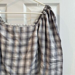 Abercrombie & Fitch plaid square neck puffy sleeve shirred back blouse