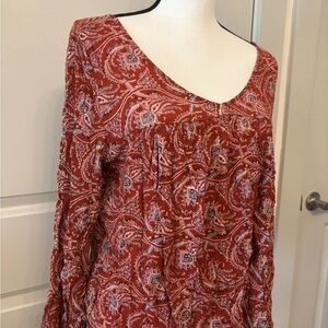Cute and flowy Abercrombie paisley patterned red blouse long sleeve