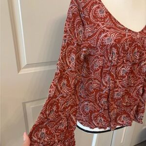 Cute and flowy Abercrombie paisley patterned red blouse long sleeve