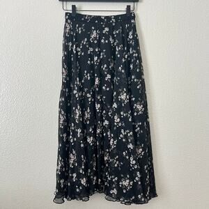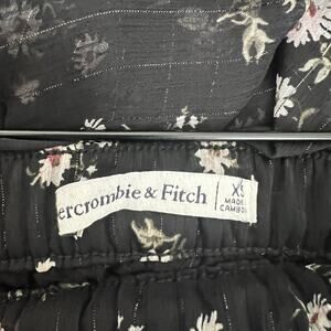 Abercrombie & Fitch sheer white daisy floral print metallic stripe maxi shirt black, Size XS. Elastic waist, pull on style. Partially lined. Good used condition.
