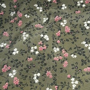 Olive green polyester blouse with pink and cream colored flowers. Button on back of neck. Never worn nwt.