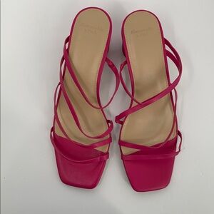 Abercrombie & Fitch strappy slide sandal shoe pink fuschia heel square toe 12