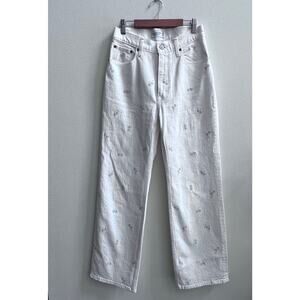 Abercrombie & Fitch the 90s Relaxed High Rise Jean Women's 25 Cream Embroidery