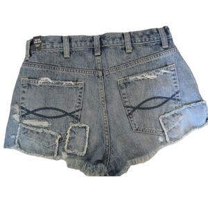 Abercrombie & Fitch the A&F high rise festival distressed jean patch shorts