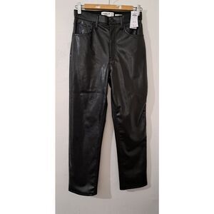 Abercrombie & Fitch womens Sz 26 vegan leather black pants warm lining ultra high rise straight leg