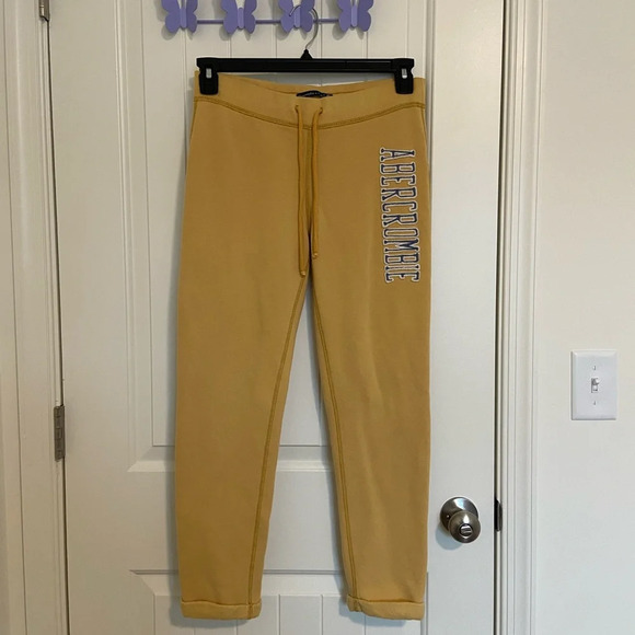 Abercrombie & Fitch women’s yellow word stitch fleece lined cuffed sweatpants XS