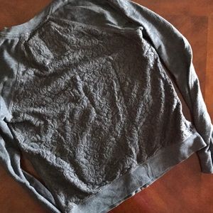 Abercrombie & Fitch zippered sweatshirt, gray with Lace and velvet flower detail, super soft, pockets