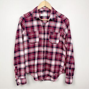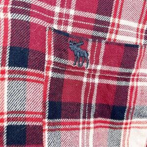 Abercrombie & Fitch Deep Red Plaid Button-up Two-pocket Long-sleeve Flannel