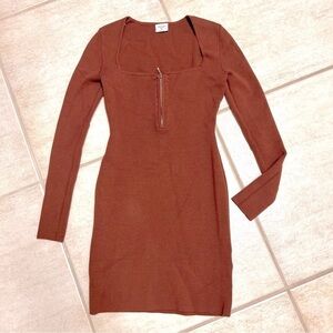 Abercrombie & Fitch-Long-Sleeve Half-Zip Mini Sweater Dress-Size: XSP Rusty.