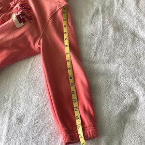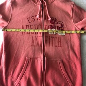 Lovingly distressed A&F full zip hoodie and an orange ombre effect. Front logo is distressed. Long Sleeved and pouch pockets in front.