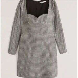Abercrombie & Fitch Sweetheart Slim Mini Dress in White Houndstooth