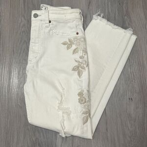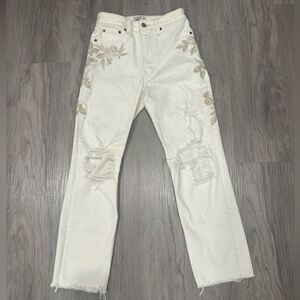 Abercrombie & Fitch White Floral Embroidered Jeans