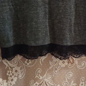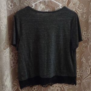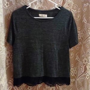 Abercrombie and Fitch, size small, gray boxy crop t-shirt with black lace trim, excellent condition