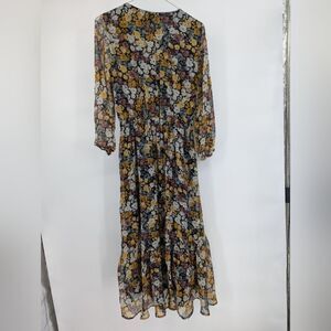 Embrace elegance with this floral chiffon midi dress. Featuring a beautiful blend of black, yellow, and white, this dress is perfect for any occasion. The lightweight fabric ensures comfort and style.