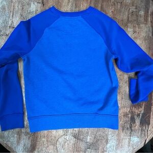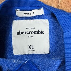 Distressed Abercrombie & Fitch vintage football inspired crew neck sweatshirt with puffy stitched on lettering, excellent patina with wear in all the right places