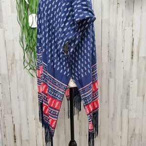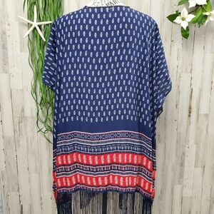 Abercrombie Fringed Boho Cardigan Kimono Navy & Red Patterned.