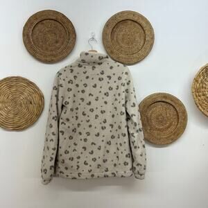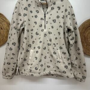 Abercrombie Gray Leopard Print Cozy Fleece Pullover Quarter Zip Sweatshirt Small