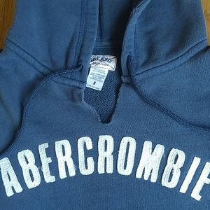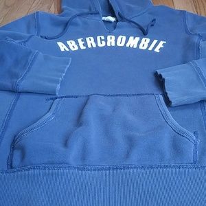 Navy blue Abercrombie logo hoodie with distressed hood and sleeves. Has not been worn in years. Excellent used condition. No trades
