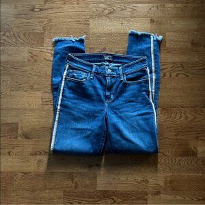 Abercrombie Harper Low Rise Ankle Jeans Denim 26 2R Blue Tan Gold Stripe Raw hem